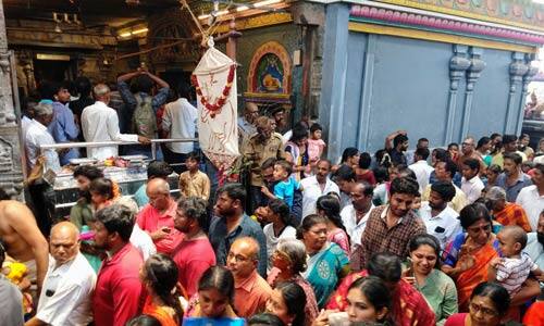 காரைக்கால் : காரைக்காலில் பிரமோற்சவ விழாயொட்டி முன்னிட்டு சனிஸ்வபகவான் கோவில் பக்தர்கள் கூட்டம் அதிகம் காணப்பட்டது.