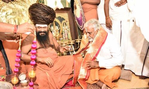 ஆசனப் பலகையில் அமர்ந்து ஆசிபெற்ற அறநிலையத் துறை அமைச்சர்