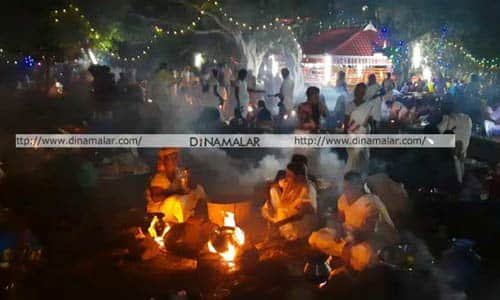 பொங்கல் விழாவில் திருமணமான புகுந்த வீட்டு பெண்களே கலந்து கொள்ள வேண்டும். இந்த வித்தியாசமான பொங்கல் விழா, சூரிய உதயத்துக்கு முன் நடத்துவதையும், கிராம மக்கள் பல ஆண்டுகளாக கடைபிடித்து வருகின்றனர். நத்தக்கரை கிராமத்தில், பொங்கல் கூடையுடன் நேற்று நள்ளிரவு 11:30 ஊர்வலமாக வந்தனர். பின், கோவில் வளாகத்தில் விடிய, விடிய பொங்கல் வைத்து வழிபாடு செய்தனர். 500க்கும் மேற்பட்ட திருமணமான பெண்கள், பூஜை பொருட்கள் அடங்கிய பொங்கல் கூடையுடன் கோவிலுக்கு வந்தனர். பின், அணிகலன்கள், பூச்சூடாமல் விதவை கோலம் பூண்டு, பொங்கல் வைத்து வழிபாடு நடத்தினர். அதிகாலையில், போலீஸ் சீருடையில் வந்த பூஜாரி, 200க்கும் மேற்பட்ட கிடா, சேவல், கோழிகளை பலி பூஜை செய்தனர்.
