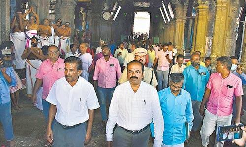 கடலுார் மாவட்டம் சிதம்பரத்தில் உள்ள உலக புகழ் பெற்ற நடராஜர் கோவிலில் வெளிநாடு மற்றும் இந்தியாவில் பல்வேறு மாநிலங்களில் இருந்து பக்தர்கள் வந்து செல்கின்றனர். இக்கோவிலில் கனகசபை மீது ஏறி சுவாமி தரிசனம் நிறுத்ப்பட்டதால் சர்ச்சை ஏற்பட்டது. இதன் காரணமாக அரசு தலையிட்டு பக்தர்களை கனகசபையில் அனுமதிக்க அரசாணை பிறப்பித்து அதனை செயல்படுத்தியது. அதனை தொடர்ந்து இம்மாதம் 7, 8 ம் தேதியில் நடராஜர் கோவிலில் அறநிலையத்துறை அதிகாரிகள் ஆய்வு வர உள்ளதாக கோவில் நிர்வாகத்திற்கு அறிக்கை அனுப்பினர். அதற்கு கோவில் தீட்சிதர்கள் எதிர்ப்பு தெரிவித்ததால்,அறநிலையத்துறை மற்றும் கோவில் தீட்சிதர்கள் ஒருவருக்கொருவர் கடுமையான அறிக்கை போர் நடத்திக்கொண்டனர். அதில் தீட்சிதர்கள் உச்சநீதிமன்ற தீர்ப்பு நகலை மேற்கொள் காட்டி நடராஜர் கோவிலில் ஆய்வு செய்ய அறநிலையத்துறைக்கு அதிகாரம் இல்லை என்பதை திட்டவட்டமாக தெரிவித்திருந்தனர். இந்நிலையில் 7, 8 தேதிகளில் ஆய்வு மேற்கொள்ள இருந்த நிலையில் 6 ம் தேதி கடலுார் மாவட்டம் வடலுார் சத்தியஞானசபைக்கு வந்த அறநிலையத்துறை அமைச்சர் சேகர்பாபு சிதம்பரம் நடராஜர் கோவிலுக்கு சுவாமி தரிசனம் செய்ய வந்தார். இதனால் திடீர் பரபரப்பு ஏற்பட்டது. தரிசனம் முடிந்து அளித்த பேட்டியில், இறைவனுக்கும், பக்தர்களுக்கும், தீட்சிதர்களுக்கும் ஒரு பாலமாக இருந்து அனைத்து பிரச்சனைகளுக்கு முடிவு ஏற்படுத்தப்படும் என அமைச்சர் சேகர்பாபு தெரிவித்து சென்றார். இந்நிலையில் அறநிலையத்துறை அதிகாரிகள் அறிக்கை அனுப்பியது போல் 7 ம் தேதி காலை 9 மணிக்கு அதிகாரிகள் குழுவினர் நடராஜர் கோவிலுக்கு ஆய்வு வந்தனர். வேலுார் இணை ஆணையர் லட்சுமணன், பழனி கோவில் இணை ஆணையர் நடராஜர், அறநிலையத்துறையின் ஆலய நிலங்களுக்கான மாவட்ட வருவுாய் ஆய்வாளர் சுகுமார் உள்ளிட்ட 10 க்கும் மேற்பட்ட அதிகாரிகள் வந்தபோது கோவில் பொது தீட்சிதர்கள் சார்பில் சட்டப்படி தங்களுக்கு ஆய்வு மேற்கொள்ள எந்த அதிகாரமும் இல்லை என பொது தீட்சிதர்கள் சார்பில் விளக்கம் அளிக்கப்பட்டது. பின்னர் அறநிலையத்துறை அதிகாரிகள் கோவிலின் சுற்று பகுதி மற்றும் உள் பகுதிகளை ஆய்வு மேற்கொண்டனர். கணக்கு வழக்குகளை கேட்க முடியாமல் திரும்பி சென்றனர். நேற்று இரண்டாம் நாள் ஆய்வுக்காக வந்த அதிகாரிகளை பொது தீட்சிதர்கள் அழைத்து சென்று சுவாமி தரிசனம் செய்து வைத்தனர். தொடர்ந்து கோவில் செயலர் மற்றும் வழக்கறிஞரை சந்திக்க வேண்டும் அதிகாரிகள் கேட்டபோது, தட்சிதம்பரம் சார்பில், இருவரும் ஊரில் இல்லை, நேற்று நாங்கள் கொடுத்த விளக்கத்தில் எந்த மாற்றமும் இல்லை என திட்டவட்டமாக தெரிவித்தனர். அதனை தொடர்ந்த