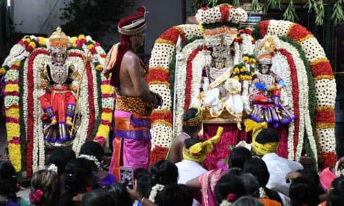 ராமநாதீஸ்வரர் கோவிலில் மூன்றாம் ஆண்டு வைகாசி விசாக பிரம்மோற்சவத்தின் ஏழாம் நாளான நேற்று சிவகாமசுந்தரி சமேத ராமநாதீஸ்வரர் திருக்கல்யாண வைபவம் நடைபெற்றது. போரூரில், ராமர் வழிபட்ட பழமை வாய்ந்த ராமநாதீஸ்வரர் கோவில் அமைந்துள்ளது. இக்கோவிலில், மூன்றாம் ஆண்டு வைகாசி விசாக பிரம்மோற்சவம், மே 31ல் துவங்கி 13ம் தேதி வரை நடைபெற உள்ளது. நேற்று இரவு 7:00 மணிக்கு, சிவகாமசுந்தரி சமேத ராமநாதீஸ்வரர் திருக்கல்யாண வைபவம் நடைபெற்றது. அதை தொடர்ந்து ராவணேஸ்வர வாகனத்தில், பஞ்சமூர்த்திகள் திருவீதி உலா நடைபெற்றது. ஏராளமான பக்தர்கள் தரிசனம் செய்தனர்.