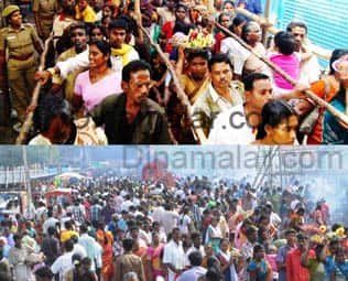 சேலம்: சேலம் கோட்டை மாரியம்மன் கோவிலில், நேற்று, ஆடு, கோழி பலியிட்டு, ஆயிரக்கணக்கான பக்தர்கள், நேர்த்திக்கடன் செலுத்தினர். எட்டுப்பேட்டையை காவல் காப்பதில், முதன்மை எல்லை தெய்வமான, சேலம் கோட்டை மாரியம்மன் ஆடிப்பெருவிழா, கடந்த 24ம் தேதி, பூச்சாட்டுதலுடன் துவங்கியது.தினசரி அதிகாலை 4.30 மணியளவில், அபிஷேக, ஆராதனைக்கு பின், சிறப்பு அலங்காரத்தில் அருள் பாலிக்கும் அம்மன், இரவில், விசேஷ வாகனங்களில் வீதியுலா வந்து, பக்தர்களுக்கு காட்சியளித்து வருகிறார். ஆடி 25வது நாளான நேற்று, 2 வது நாளாக, தங்கக் கவசத்தில் அம்மன் வீற்றிருந்தார். கோவில் தெற்கு கோபுரவாசல் வழியாக, பக்தர்கள் தரிசனத்துக்காக அனுப்பி வைக்கப்பட்டனர். பக்தர்கள் கூட்டம் அலைமோதிய நிலையில், நான்கு வரிசைகளில், நீண்ட வரிசையில் காத்திருந்து, தரிசனம் செய்தனர்.ஆண்கள், பெண்களுடன், குழந்தைகளும், பக்தி பரவசத்துடன், கோவில் உட்பிரகார பகுதியில், அங்கப்பிரதட்சனம் செய்தனர். அலகுகுத்தி வந்த பக்தர்கள், தங்களது நேர்த்திக்கடனை செலுத்தினர். அம்மனுக்கு பொங்கலிட்டு, மாவிளக்கு தீபம் ஏற்றி வழிபாடு செய்த பக்தர்கள், ஆடு, கோழி பலியிட்டும், நேர்த்திக்கடன் செலுத்தினர். அதோடு, அம்மனுக்கு மிகவும் பிடித்தமான கம்பங்கூழ், ராகி கூழ் ஊற்றி பிரார்த்தனை செய்தனர். ஆடிப்பெருவிழாவையொட்டி, கோவிலை சுற்றிலும், வளையல் கடைகள், விளையாட்டு சாமான்கள், பொம்மைகள், பலூன் கடைகள், தின்பண்டங்கள் உள்ளிட்ட ஏராளமான கடைகள் வைக்கப்பட்டிருந்தது. சாமி தரிசனத்துக்குபின் வீடு திரும்பிய பக்தர்கள், குழந்தைகளுக்கு தேவையான பொம்மைகள், விளையாட்டு பொருட்கள், பெண்களுக்கு தேவையான வளையல்கள் வாங்கிச் சென்றதால், வியாபாரம் களை கட்டியது. பக்தர்கள் வந்து செல்ல வசதியாக, போக்குவரத்து மாற்றப்பட்டு, பழைய பஸ் ஸ்டாண்டுக்கு வரும் பஸ்கள் அனைத்தும், ஆட்கொல்லி பாலம் வழியாக வந்து, செல்ல அனுமதிக்கப்பட்டது. முன்னெச்சரிக்கை நடவடிக்கையாக, துணை கமிஷனர் ரவீந்திரன் தலைமையில், 248 போலீஸார் பாதுகாப்பு பணியில் ஈடுபடுத்தப்பட்டுள்ளனர்பக்தர்கள் கூட்டத்தில், திருடர்கள் கைவரிசை காட்டுவதை தடுக்கும் விதமாக, ஏராளமான போலீஸார், மாறுவேடத்தில் கண்காணிப்பு பணியில் ஈடுபட்டனர். தொடர்ந்து, இன்று அதிகாலை ஐந்து மணிக்கு அம்மனுக்கு, சிறப்பு அபிஷேகமும், அலங்கார ஆராதனைக்கு பின், சிறப்பு அலங்காரத்தில் பக்தர்களுக்கு அருள் பாலிக்கிறார். மாலை 6 மணியளவில், குதிரை வாகனத்தில், வீதியுலா வருகிறார்.