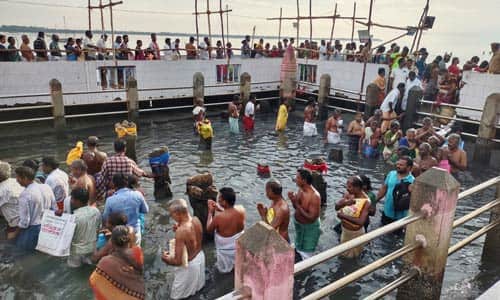 தேவிபட்டினம்: ஆடி அமாவாசையை முன்னிட்டு, தேவிபட்டினம் நவபாஷாண கடற்கரையில், பல்லாயிரக்கணக்கான பக்தர்கள் புனித நீராடி வழிபாடு செய்தனர்.