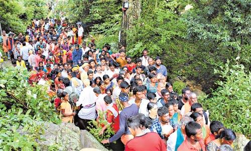 இதனை முன்னிட்டு நேற்று முன்தினம் நள்ளிரவு முதல் தாணிப்பாறை மலை அடிவாரத்தில் தமிழகத்தின் பல்வேறு பகுதிகளில் இருந்து வந்திருந்த பக்தர்கள் குவிந்திருந்தனர். நேரம் செல்ல, செல்ல பக்தர்களின் கூட்டம் அதிகரித்து, சுமார் 2 கிலோ மீட்டர் தூரத்திற்கு நீண்டதால் அதிகாலை 04:45 மணிக்கு வனத்துறை கேட் திறக்கப்பட்டு பக்தர்கள் சாமி தரிசனம் செய்ய அனுமதிக்கப்பட்டனர். நுழைவு கட்டணம் வசூலித்தால் மிகவும் கால தாமதம் ஏற்படும் என்பதால் நேற்று வனத்துறையினர் நுழைவு கட்டணம் வசூலிக்கவில்லை. மதியம் 03:00 மணி வரை சுமார் 35 ஆயிரத்திற்கும் மேற்பட்ட பக்தர்கள் மலை ஏறியதாக வனத்துறையினர் தெரிவித்தனர். நள்ளிரவில் பெய்த மழையின் காரணமாக ஓடையில் ஓரளவிற்கு நீர் வரத்து இருந்தது. இதனை பக்தர்கள் கடந்து செல்வதை வனத்துறை மற்றும் தீயணைப்புத் துறையினர் கண்காணித்தனர். மேலும் செல்லும் வழித்தடம் ஈரமாக இருந்ததால் பக்தர்கள் மலைப்பாதையில் நடந்து செல்வதில் சிரமத்தை சந்தித்தனர்.