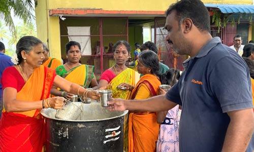 ஆடி வெள்ளி : அம்மன் கோயிலில் பக்தர்களுக்கு கூழ் வழங்கப்பட்டது