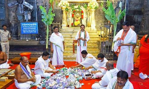 காளஹஸ்தி சிவன் கோயிலில் உண்டியல் காணிக்கை எண்ணும் பணி