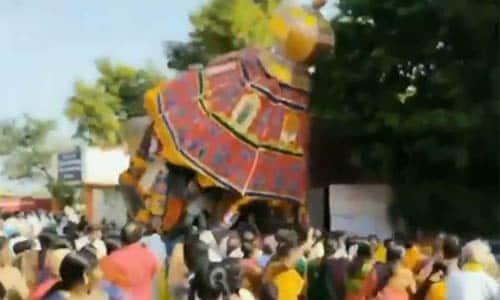 இழுத்த மறுகணமே கவிழ்ந்த பிரஹதாம்பாள் கோவில் தேர் 7 பேர் காயம்