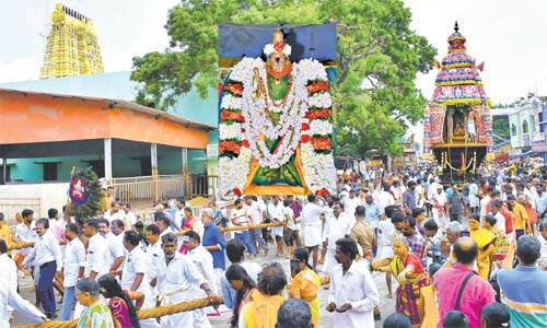 9ம் நாள் விழாவான நேற்று கோயிலில் இருந்து பர்வதவர்த்தினி அம்மன் புறப்பாடாகி தேரில் எழுந்தருளியதும், மகா தீபாராதனை நடந்தது. கோயில் துணை ஆணையர் மாரியப்பன், கோயில் உதவி கோட்ட பொறியாளர் மயில்வாகனன், நகராட்சி தலைவர் நாசர்கான், கோயில் கண்காணிப்பாளர் பாலசுப்பிரமணியன், பேஸ்கார் கமலநாதன் பங்கேற்றனர்.தேரின் வடத்தை ஏராளமான பக்தர்கள் இழுத்து கோயில் ரத வீதியில் வலம் வர தேரோட்டம் உற்சாகமாக நடந்தது. காலை 10:00 மணி முதல் 12:00 மணி வரை தேரோட்டம் நடந்த போது, பக்தர்கள் பாது காப்பு, போக்குவரத்தை ஒழுங்குபடுத்த ஒரு போலீசார் கூட பணியில் இல்லாததால், ரதவீதியில் தாறுமாறாக நின்ற வாகனங்களால், தேரை இழுத்து சென்ற பக்தர்களுக்கு இடையூறாக இருந்தது.