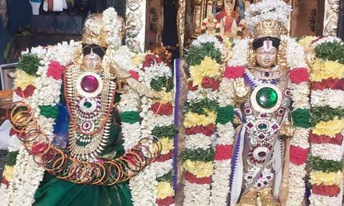 திருநகர்: மதுரை திருநகர் மகாலட்சுமி நெசவாளர் காலனி வர சித்தி விநாயகர் கோயில் பெருந்தேவி தாயார் சமேத பிரசன்ன வரதராஜ பெருமாள் கோயிலில் ஆடிப்பூரம் உற்ஸவத்தை முன்னிட்டு திருக்கல்யாண வைபவம் நடந்தது. ஜூலை 30ல் உற்சவ விழா துவங்கியது. திருவிழாவின் உச்ச நிகழ்ச்சியாக இன்று திருக்கல்யாணத்தை முன்னிட்டு காலை ஆண்டாள், பிரசன்ன வரதராஜ பெருமாளுக்கு அபிஷேகம் பூஜைகள் திருக்கல்யாண அலங்காரமாகி மூலவர் முன்பு எழுந்தருளினர். சுவாமிகளுக்கு மாலை மாற்றி திருக்கல்யாணம் முடிந்து ஊஞ்சல் சேவை நடந்தது. பக்தர்களுக்கு வளையல், அன்னதானம் வழங்கப்பட்டது. கோயில் நிர்வாகிகள் விழா ஏற்பாடுகள் செய்தனர்.