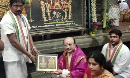 ஸ்ரீ காளஹஸ்தி: திருப்பதி மாவட்டம் ஸ்ரீகாளஹஸ்தி சிவன் கோயிலுக்கு ஆந்திர மாநில உயர்நீதிமன்ற நீதிபதி சியாம் சுந்தர் ஞாயிற்றுக்கிழமை சாமி தரிசனம் செய்ய வந்தவரை கோயில் அதிகாரிகள் சிறப்பு வரவேற்பு ஏற்பாடு செய்ததோடு சிறப்பு தரிசன ஏற்பாடுகளையும் செய்தனர் . கோயிலுக்குள் சென்றவர் ஸ்ரீ காளஹஸ்தீஸ்வரரையும் ஞானப்பிரசுனாம்பிகை தாயாரையும் சாமி தரிசனம் செய்தவருக்கு பொன்னாடை போர்த்தி கௌரவித்ததோடு சாமி படத்தையும் கோயில் பிரசாதங்களையும் கோயில் நிர்வாக அதிகாரி சாகர் பாபு வழங்கினர்.