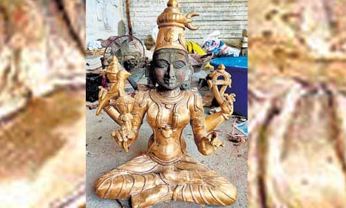 சென்னையைச் சேர்ந்தவர்கள், 1.5 லட்ச ரூபாய் மதிப்பீட்டில், 2.5 அடி உயரத்தில் காமாட்சியம்மன் உலோக சிலையை தயாரிக்க கூறியிருந்தனர். இதையடுத்து, ராம்குமார் தயாரித்த காமாட்சியம்மன் உலோகச் சிலையை அழகு படுத்தும் பணி மேற்கொண்டிருந்தார். சில நாட் களுக்கு முன், பட்டறையில் வைத்து பூட்டியிருந்த காமாட்சியம்மன் உலோகச் சிலை காணாமல் போனதால், அதிர்ச்சியடைந்தார்.இது பற்றி, கும்பகோணம் தாலுகா போலீசில் ராம்குமார் அளித்த புகார்படி, போலீசார் விசாரித்து வருகின்றனர்.