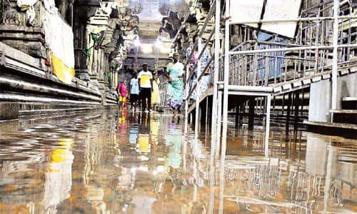 ராமேஸ்வரத்தில் கனமழை : கோயில்களை மழை நீர் சூழ்ந்தது