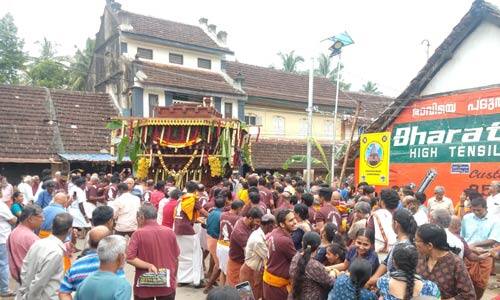 நேற்று காலை சூத்திர புண்ணியாகம், விஸ்வரூபம் திருவரதானம், அக்னி பிராணாயானம், யுக்த ஹோமம், அனந்த ஹோமம், பூர்ணஹூதி ஆகிய நிகழ்ச்சிகளுக்கு பிறகு கோபூஜை, மகா தீபாராதனை, ரதப் பிரதிஷ்ட்டை, ரத கும்பாபிஷேகம், பலி, சுவாமி எழுந்தருளல், ரத சமர்ப்பணம், சுவாமி ரதாரோஹணம், நிவேதியம், தீபாராதனை, சுவாமி ரத அவரோகணம், ஆலய பிரதிக்ஷணம், மகா நிவேதியம், மகா தீபாராதனை, ஆசீர்வாதம் அன்னதானம் ஆகிய நிகழ்ச்சிகள் நடந்தன. மாலை 3.30 மணி அளவில் தேர் வெள்ளோட்டம் கிராம வீதிகளில் நடைபெற்றனர். இதற்கான ஏராளமான பக்தர்கள் திரண்டு வந்திருந்தனர்.