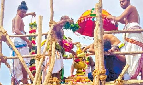 கல்லல்: கல்லலில் உள்ள நற்கனி அம்மன் கோயில் கோபுர கலசத்தில் புனிதநீர் ஊற்றி கும்பாபிஷேகம் நடத்தினர்.