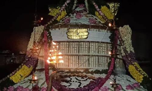 இவ்வாறு சிறப்புமிக்க இக்கோவிலில் ஆண்டுதோறும் ஐப்பசி பவுர்ணமி தினத்தன்று, அன்னாபிஷேகம் நடப்பது வழக்கம். இந்த ஆண்டுக்கான அன்னாபிஷேகம் இன்று நடந்தது. இதற்காக, 75 கிலோ எடை உள்ள 35 மூட்டை என 2,625 கிலோ அரிசியால், மெகா சைஸ் குக்கரில் சாதம் சமைக்கப்பட்டு, உலர்த்தப்பட்டு மூங்கில் கூடைகளில் நிரப்பி, 109 சிவாச்சாரிகள் வரிசையில் நின்றவாறு அன்னத்தை சுமந்து சென்று லிங்கத்தின்மேல் சாத்தினர். பின்னர், மலர்கள், காய், கனிகளால் அலங்கரிக்கப்பட்டு, மாலை 6 மணியளவில் மஹாதீபாராதனை நடந்தது. அன்னாபிஷேகத்திற்கு பின் தீபாராதனை முடிந்து, லிங்கத்தின் மேல் சாத்தப்பட்ட அன்னம் இரவு 9 மணியளவில் பக்தர்களுக்கு பிரசாதமாக வழங்கப்பட்டது. மீதியிருந்த சாதம் ஏரி, குளங்களில் மீன்களுக்கு உணவாக அளிக்கப்பட்டது. லிங்கத்தின் மேல் சாத்தப்படும் ஒவ்வொரு சாதமும் லிங்கத்தின் தன்மையை பெறும். இதனால், ஒரே நேரத்தில் கோடிக்கணக்கான சிவலிங்கத்தை தரிசிக்கும் புண்ணியம் கிடைக்கும் என்பதால் திரளான பக்தர்கள் பங்கேற்று, லிங்கத்தின்மேல் சாத்தப்பட்ட அன்னத்தை பிரசாதமாக பெற்று சுவாமி தரிசனம் செய்தனர்.