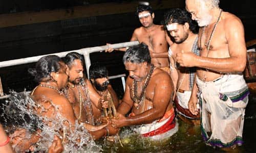 திருவண்ணாமலை : திருவண்ணாமலை அருணாசலேஸ்வரர் கோவிலில் சந்திர கிரகணத்தை முன்னிட்டு, அண்ணாமலையாருக்கு தீர்த்தவாரி நடந்தது. அருணாசலேஸ்வரர் கோவிலில், பிரம்ம குள தீர்த்தத்தில் சூலம் ரூபத்தில் அண்ணாமலையாருக்கு தீர்த்தவாரி நடந்தது. தீர்த்தவாரியில் ஏராளமான பக்தர்கள் வழிபட்டனர்.