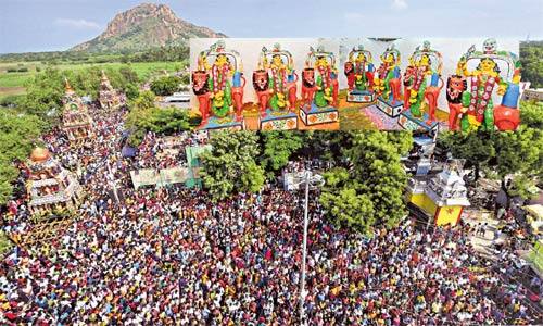 ஏழூர் முத்தாலம்மன் கோயில் திருவிழா : சப்பரத்தை சுமந்து வந்த பக்தர்கள்