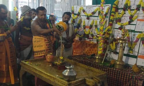 பரமக்குடி விசாலாட்சி அம்பிகா சமேத சந்திரசேகர சுவாமி (ஈஸ்வரன்) கோயிலில் கும்பாபிஷேகத்தின் முன்னோட்டமாக பாலாலய விழா நடந்தது. இக்கோயிலில் நேற்று முன்தினம் மாலை 5:00 மணி முதல் அனுக்கை, கணபதி பூஜை, வாஸ்து சாந்தியுடன், யாகசாலை பூஜை துவங்கியது. தொடர்ந்து முதல் கால யாக பூஜைகள் தொடங்கி, இரவு 10:00 மணிக்கு மகாபூர்ணாகுதி நடந்தது. இன்று காலை 7:00 மணி முதல் இரண்டாம் கால யாக பூஜைகள் தொடங்கி, கோபூஜை, ஜெபம், ஹோமங்கள் நிறைவடைந்து மகாபூர்ணாகுதி நடந்தது. பின்னர் 9:30 மணிக்கு மேல் தீர்த்த குடங்கள் புறப்பாடாகி, சிவாச்சாரியார்கள் அனைத்து விமான படங்களுக்கும் பாலாலய மகா அபிஷேகம் செய்தனர். மேலும் சந்திரசேகர சுவாமி, விசாலாட்சி அம்பிகைக்கு சிறப்பு அபிஷேக, ஆராதனைகள் நடந்தன. தீபாராதனைக்கு பின் பக்தர்களுக்கு பிரசாதங்கள் வழங்கப்பட்டன. ஏற்பாடுகளை சுந்தரராஜ பெருமாள் தேவஸ்தான டிரஸ்டிகள் செய்திருந்தனர்.