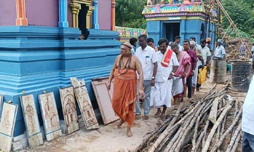 இக்கோவில் வரும் 20ம் தேதி கும்பாபிஷேகம் நடக்கிறது. இக்கோவில் திருப்பணிகளை திருவாவடுதுறை ஆதீனம் 24வது குருமகாசந்நிதானம் ஸ்ரீலஸ்ரீ அம்பலவாண தேசிக பரமாசாரிய சுவாமிகள் பார்வையிட்டார். தொடர்ந்து 45 நதிகளின் புனித தீர்த்தங்களுக்கு வழிபாடு செய்து யாகசாலை மண்டபம் மற்றும் புனித நீர் ஊர்வலத்திற்கான பக்தர்களுக்கான 500 குடங்கள், புடவைகள் மற்றும் கோவில் விமானத்தில் வைக்கப்படும் கலசங்களையும் பார்வையிட்டு கும்பாபிஷேக ஏற்பாடுகளையும் கேட்டறிந்தார்.
