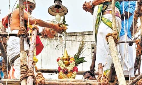 தேவகோட்டை: தேவகோட்டை சிலம்பணி வெள்ளாளர் தெருவில் உள்ள சிலம்பணி ஸ்ரீ முத்துமாரியம்மன் கோவில் கும்பாபிஷேகம் நடைபெற்றது. முன்னதாக ஸ்தானிகர் ரவி, கருப்பு தலைமையில் சிவாச்சாரியார்களின் இரண்டு கால யாக பூஜைகள் நடந்தன. இதனைத் தொடர்ந்து சக்தி விநாயகர், சிவசுப்பிரமணியர் சுவாமிகள், சிலம்பணி முத்து மாரியம்மனுக்கு கும்பாபிஷேகம் நடந்தது. தொடர்ந்து. அம்மனுக்கு மகா அபிஷேகம் சிறப்பு அலங்காரம் சிறப்பு பூஜைகள் நடந்தன. நிகழ்ச்சியில், நகராட்சி தலைவர் சுந்தரலிங்கம், துணை தலைவர் ரமேஷ், குமார், ஆவின் தலைவர் அசோகன், கவுன்சிலர்கள், கோவில் நிர்வாகிகளும், கும்பாபிஷேகம் நிர்வாகிகளும் உட்பட ஏராளமான பக்தர்கள் பங்கேற்று சுவாமி தரிசனம் செய்தனர். குமார் தலைமையில் பட்டிமன்றம் நடைப்பெற்றது.