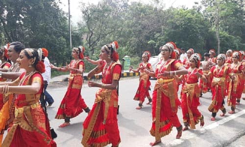 திருவண்ணாமலை : திருவண்ணாமலை அருணாசலேஸ்வரர் கோயிலில், உலக சாதனை முயற்சிக்காக, தெலுங்கானா மாநிலத்தைச் சேர்ந்த பரதநாட்டிய குழுவினர்கள், கோவில் ராஜகோபுரம் முன் இருந்து நடனம் ஆடியபடி 14 கிலோ மீட்டர் கிரிவலம் செல்ல தொடங்கினார். நிகழ்ச்சியில் ஏராளமானோர் கலந்து கொண்டனர்.