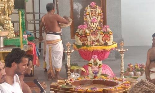 கோவை: குனியமுத்தூர் நரசிம்மபுரத்தில் உள்ள ஸ்ரீலஷ்மி நாராயணப்பெருமாள் கும்பாபிஷேகம் வரும் ஞாயிற்றுகிழமை 4ம் தேதி நடக்க உள்ளது. அதையொட்டி இன்று வாஸ்து பூஜை மற்றும் சிறப்பு ஹோமங்கள் நடந்தது. இதில் பக்தர்கள் கலந்துகொண்டு வழிபட்டனர்.