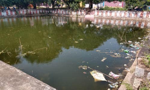 குப்பையால் அசுத்தமடையும் ஜம்புலிபுத்தூர் கோயில் தெப்பம்
