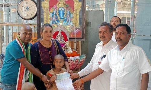 காளஹஸ்தி: சித்தூர் மாவட்டம் ஐரால மண்டலம் காணிப்பாக்கம் ஸ்ரீவரசித்தி விநாயகர் கோயிலில் நடக்கும் நித்திய அன்னதானத் திட்டத்திற்காக ஒரு லட்சத்து 116 ரூபாய் காண காசோலையை தெலுங்கானா மாநிலம் கொத்த கூடேம் பகுதியை சேர்ந்த மாதவி குடும்பத்தினர் நன்கொடையாக வழங்கினர். முன்னதாக இவர்களுக்கு சிறப்பு தரிசன ஏற்பாடுகளை கோயில் சார்பில் செய்யப்பட்டது. ஸ்ரீ விநாயகப் பெருமானை தரிசனம் செய்தவர்களுக்கு கோயில் தீர்த்த பிரசாதங்களை கோயில் கண்காணிப்பாளர்கள் சீனிவாஸ் மற்றும் பாபு வழங்கினார்கள்.