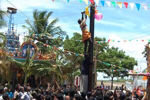 கீழக்கரை: கீழக்கரை அருகே கொம்பூதியில். 29ம் ஆண்டு கிருஷ்ணஜெயந்தி விழா, சென்னை வெங்கடேஸ்வரி அறக்கட்டளை நிறுவனர் ஏ.எம்.செல்வராஜ் தலைமையில், கோலாகலமாக நடந்தது.நேற்று முன்தினம் கிராம தேவதைகள் வழிபாடு நடத்தப்பட்டது. விநாயகர் கோயிலில் சிறப்பு பூஜை நடந்தது. 108 பால்குடங்களுடன் ஊர்வலமாக சென்ற பக்தர்கள், "கோவிந்தா, கோபாலா கோஷம் எழுப்பி, முக்கிய வீதிகள் வழியாக கண்ணன் கோயில் வந்தடைந்தனர்.ஊராட்சி தலைவர் கிருஷ்ணன், சமுதாயக் கொடி ஏற்றினார். காலையில் விளையாட்டுப் போட்டிகள், நடந்தது. சந்தனகாப்புக்கு பின் இரவு 12 மணிக்கு, கண்ணபிரான் பிறந்தநாள் விழாவும், சிறப்பு அபிஷேக ஆராதனையும் நடந்தது.நேற்று காலை மஞ்சள் நீராட்டுடன் விழா துவங்கியது. வழுக்கு மரம் ஏறும் போட்டியை, ஊராட்சி முன்னாள் தலைவர் முருகன் துவக்கி வைத்தார். செந்தில்குமார், முருகன், முருகானந்தம் ஆகியோர், வழுக்கு மரம் ஏறி பரிசு பெற்றனர். சென்னை வெங்கடேஸ்வரி அறக்கட்டளை நிறுவனர் ஏ.எம்.செல்வராஜ், உறியடி உற்சவத்தை துவக்கி வைத்தார். கிருஷ்ணமூர்த்தி உட்பட பலர் ஊறியடித்தனர். ஊராட்சி தலைவர் முன்னாள் முத்துகிருஷ்ணன், தேரோட்டத்தை துவக்கி வைத்தார். பின்னர் அன்னதானம் வழங்கப்பட்டது.யாதவ சங்க தலைவர் எஸ்.வி.சாமி, செயலாளர் சாத்தையா, பொருளாளர் கணபதி, விழா கமிட்டியாளர்கள் அரிதாஸ், முத்து, பூமிநாதன், பாண்டி ஏ.கிருஷ்ணன், வேலு, அரியப்பன், சேதுபாண்டி, ஏ.எம்.தட்சிணாமூர்த்தி, எம்,கிருஷ்ணன், ஊராட்சி துணை தலைவர் வீரையா, ஊராட்சி முன்னாள் தலைவர் முருகன், வி.ஏ.ஓ.(ஓய்வு)க்கள் முருகேசன், மலைமேகம், பெரியபட்டணம் வி.ஏ.ஓ., பாலையா, மாயாகுளம் மாணவர் விடுதி காப்பாளர் சண்முகராஜன், இன்ஜினியர் கர்ணன், தி.மு.க., செயலாளர் ராமலிங்கம், கீழக்கரை வர்த்தகர் சண்முகராஜ், கொம்பூதி அன்பரசன், சபரிகுரு, ஏர்வாடி மலைச்சாமி ஆகியோர் பங்கேற்றனர்.
