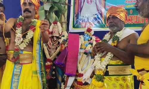 முன்னதாக வடக்குரத வீதி பொதுமக்கள் மேளதாளம் முழங்க அதிர்வேட்டு வெடித்து சீர்வரிசை சுமந்து ஊர்வலம் வந்தனர். இதையடுத்து பிரசாந்த் சர்மா பட்டர் தலைமையில் யாக பூஜைகள் நடந்தது. இக்கோயில் வளாகத்தில் அர்ச்சுனனுக்கும் திரவுபதி அம்மனுக்கும் பரம்பரை பூசாரிகள் தலைமையில் மாலை மாற்றும் நிகழ்வு நடந்தது. இதையடுத்து சுவாமி சமேதராய் கன்னி ஊஞ்சாலாடினர். இத்திருக்கல்யாண விழாவினை செயல் அலுவலர் இளமதி, வசந்த், பரம்பரை அறங்காவலர்கள் அர்ச்சுனன், திருப்பதி, ஜவகர்லால், குப்புசாமி ஆகியோர் ஏற்பாடுகளை செய்திருந்தனர். இதையடுத்து அர்ச்சுனன் பிரதர்ஸ் பக்தர்களுக்கு அன்னதானம் வழங்கினர். தொடர்ந்து மாலை திருவிளக்கு பூஜை நடந்தது. சுவாமி சமேதராய் வீதியுலா புறப்பாடானது. இதில் உபயதாரர்கள் உட்பட ஏராளமான பக்தர்கள் பங்கேற்றனர்.