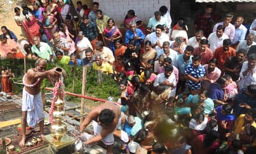 கூடலூர், புளியம்பாறை ஆயிரம்வில்லி பகவதி கோவில் கும்பாபிஷேகம் திருவிழா கடந்த 22ம் தேதி காலை கணபதி ஹோமத்துடன் துவங்கியது. தொடர்ந்து, நேற்று வரை யாகசாலை பூஜைகள் நடந்தது. இன்று அதிகாலை கணபதி ஹோமம் தொடர்ந்து, பிராஸாத பிரதிஷ்டை, பீட பிரதிஷ்டை, பிம்ப கலசாதிகள் உள்பிரவேசனம், பராத்யாவாஹனகள், அபஸ்தாவாஹன், மந்திராவாஹன், தானமூர்த்தம், பிம்பபிரதிஷ்டை, அஷ்டபந்தன கிரியை உள்ளிட்ட பூஜைகள் நடந்தது. தொடர்ந்து, காலை 10:00 மணிக்கு பிரம்மமஸ்ரீ தந்திரி கிழக்கும்பாடத்து வாசுதேவன் நம்பூதிரிப்பாடு தலைமையில் கும்பாபிஷேகம் சிறப்பாக நடந்தது. ஏராளமான பக்தர்கள் பங்கேற்று தரிசனம் செய்தனர். தொடர்ந்து சிறப்பு பூஜைகள் நடந்தது.