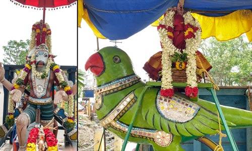 அவிநாசி லிங்கேஸ்வரர் கோவிலில் அதிகார நந்தி, கிளி வாகனத்தில் சுவாமி வீதி உலா