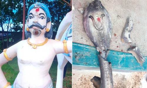 அன்னூர்: அன்னூர் அருகே கோவில் சிலைகளை சேதப்படுத்தியவர் குறித்து போலீசார் விசாரிக்கின்றனர். அன்னூர் அருகே மூலக் குரும்பபாளையத்தில் 150 ஆண்டுகள் பழமையான அண்ணன்மார் கோவில் உள்ளது. இக்கோவிலில் நேற்று முன்தினம் இரவு அமாவாசை பூஜையை முடித்துவிட்டு கோவிலை பூட்டி விட்டு சென்றனர். நேற்று காலை 6:00 மணிக்கு சென்று பார்த்தபோது கோவிலில் ஏழு வேல்கள் வளைக்கப்பட்டிருந்தன. இரண்டு நாக சர்ப்ப சிலைகள், சாம்புகன் சிலை சேதப்படுத்தப்பட்டிருந்தன. காலனியில் உள்ள பட்டத்தரசி அம்மன் கோவிலிலும் மூன்று வேல்கள் மற்றும் ஒரு சிலை சேதப்படுத்தப்பட்டிருந்தது. இதை பார்த்து அதிர்ச்சி அடைந்த பூசாரி சண்முகம் அளித்த புகாரின் பேரில் அன்னூர் போலீசார் வழக்கு பதிவு செய்து விசாரிக்கின்றனர். அதே ஊரை சேர்ந்த தற்போது வேறு மதத்திற்கு மாறிய சுரேஷ், 39. என்பவர் கோவில்பாளையம் தனியார் மருத்துவமனையில் நெஞ்சுவலி என்று கூறி சிகிச்சைக்கு சேர்ந்துள்ளார். இன்ஸ்பெக்டர் நித்யா தலைமையிலான போலீசார் அவரிடம் விசாரிக்கின்றனர்.