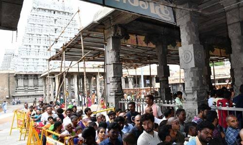 திருவண்ணாமலை அருணாசலேஸ்வரர் கோவிலில் தமிழகம் மட்டுமல்லாமல் வெளி மாநிலம், வெளிநாடுகளில் இருந்தும் பக்தர்கள் வந்து செல்கின்றனர். கோயிலுக்கு திருவிழா காலங்களில் லட்சக்கணக்கான பக்தர்களும், தினசரி ஆயிரக்கணக்கான பக்தர்களும் தரிசனசக செய்து வருகின்றனர். இந்நிலையில் விடுமுறை தினமான நேற்று பல்லாயிரக்கணக்கான பக்தர்கள் குடும்பத்துடன் வந்திருந்தனர். மூன்றாம் பிரகாரத்தில் நீண்ட வரிசையில் காத்திருந்து சுவாமி தரிசனம் செய்தனர்.