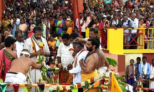 கொடைக்கானல், கொடைக்கானல் ஆனந்தகிரி பெரிய மாரியம்மன் கோயில் கும்பாபிஷேகம் ஓம் சக்தி, பராசக்தி என பக்தர்கள் கோஷமிட சிறப்பாக நடந்தது. நான்கு நாள் நடந்த யாகசாலை பூஜை வேத அனுக்கையுடன் துவங்கின. தொடர்ந்து விக்னேஸ்வர பூஜை, கணபதி ஹோமம், நவக்கிரக ஹோமம், , வாஸ்து சாந்தி, மிருத்சங்கீரஹணம், அங்குரார்பனம், ரக்க்ஷாபந்தனம் நடந்தது. இரண்டாம் யாசாலை சாலை பூஜையில் பூர்ணாகுதி, தீபாதரனை. விக்ரங்களுக்கு அஷ்டபந்தன மருந்து சாத்துதல், மூன்றாம் யாகசாலை பூஜையும், நான்காம் யாகசாலை பூஜையில் பிரதிஷ்ட ஹோமம் பூர்ணாஹூதி, ஐந்தாம் யாக சாலை பூஜையில் வேதிக்கார்ச்சனை, அஷ்டபந்தனம் சாத்துதல், ஆறாம் கால பூஜையில் நாடி சந்தானம், ஸபர் சா ஹீதி, நேத்ரா உண்மீலம், கடங்கள் விமானம் சென்று ஸ்ரீ மாரியம்மன், கணபதி, சுப்ரமணியர், ஆஞ்சநேயர், நாகாத்தாள் உள்ளிட்ட பரிவார தெய்வ கலசங்களுக்கு புனித நீர் தெளிக்கப்பட்டது. ஏராளமான பக்தர்கள் கலந்து கொண்டனர். தொடர்ந்து அன்னதானம் நடந்தது. ஏற்பாடுகளை நிர்வாகத்தினர் செய்திருந்தனர்.