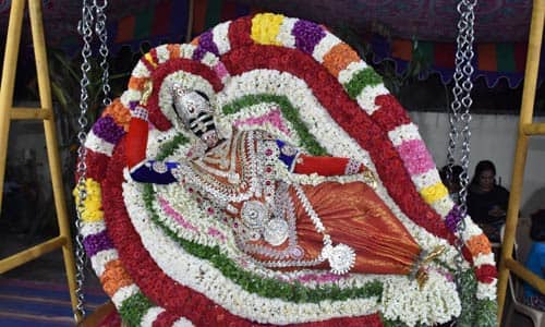 புதுச்சேரி; முதலியார் பேட்டை முத்துமாரியம்மன் கோயிலில் ஆடி மாத விழாவை முன்னிட்டு ஊஞ்சல் உற்சவம் நடந்தது.
