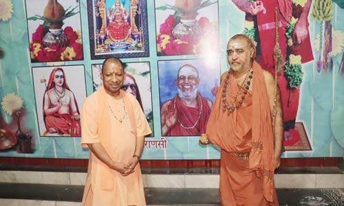 வாரணாசியில் விஜயேந்திரரை சந்தித்து ஆசி பெற்ற உபி முதல்வர் யோகி ஆதித்யநாத்