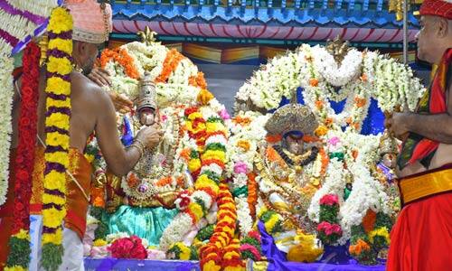 ராமேஸ்வரம் ராமநாதசுவாமி கோயிலில் ஆடித் திருக்கல்யாண விழா ஜூலை 13ல் கொடி ஏற்றத்துடன் விழா துவங்கியது. 12ம் நாள் விழாவான நேற்று மாலை 7 மணிக்கு கோயில் திருக்கல்யாண மண்டபத்தில் பூக்களால் அலங்கரித்த மணமேடையில் ராமநாதசுவாமி, பர்வதவர்த்தினி அம்மன் எழுந்தருளினர். இதனைத்தொடர்ந்து திருமாங்கல்யத்தை கோயில் யானை ராமலட்சுமி மூலம் ரதவீதியில் ஊர்வலமாக எடுத்து வரப்பட்டு, இரவு சுவாமி ஆசியுடன் கோயில் குருக்கள் அம்மனுக்கு திருமாங்கல்யம் அணிவித்து, ஆடித் திருக்கல்யாணம் விழா விமரிசையாக நடந்தது. இதன்பின் சுவாமி, அம்மனுக்கு மகா தீபாராதனை நடந்தது. இதில் ராமேஸ்வரம் நகராட்சி தலைவர் நாசர்கான், ராமேஸ்வரம் காஞ்சி மடம் மேலாளர் ஆடிட்டர் சுந்தரம், நிர்வாகி சாச்சா, யாத்திரை பணியாளர் சங்க தலைவர் பாஸ்கரன், ஏராளமான பக்தர்கள் சுவாமி தரிசனம் செய்தனர். பக்தர்களுக்கு யாத்திரை பணியாளர்கள் சங்கம் சார்பில் திருமாங்கல்யம் கயிறு, மஞ்சள் அடங்கிய பிரசாத பாக்கெட் வழங்கினர்.