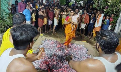 சிதம்பரம் அண்ணாமலை நகர் சி.கொத்தங்குடி தோப்பில் அமைந்துள்ள மகா மாரியம்மன் ஸ்ரீ ரேணுகா பரமேஸ்வரி கோவில் 31 ம ஆண்டு தீ மிதி திருவிழா கடந்த 16ஆம் தேதி இரவு கொடியேற்றத்துடன் தொடங்கியது. தொடர்ந்து தினமும் பல்வேறு வாகனங்களில் சாமி வீதி உலா நடந்தது. முக்கிய விழாவான தீமிதி உற்சவ நாளான நேற்று காலை 6 மணிக்கு அம்மனுக்கு அபிஷேகமும் கரங்கள் எடுத்தாலும் நடந்தது. தொடர்ந்து பிராணிகளுக்கு சிறல் போடுதல் பக்தர்கள் காவிரி எடுத்தல் அலகு போடுதல் எடுத்து நேர்த்தி கடன் செலுத்தினர். நாளை 6:00 மணிக்கு காளி ஆட்டத்துடன் தீமிதி திருவிழா தொடங்கியது. ஆயிரக்கணக்கான பக்தர்கள் தீமிதித்து நேர்த்திக்கடன் செலுத்தினர். தொடர்ந்து இரவு அம்பாளுக்கு அபிஷேகமும் அம்மன் வீடியோ காட்சி நடந்தது இரவு ஊஞ்சல் உற்சவத்துடன் விழா நிறைவு பெறுகிறது. விழா ஏற்பாடுகளை ஆலய நிர்வாகிகள் மற்றும் கொத்தங்குடி கிராமத்தினர் செய்து வருகின்றனர்.