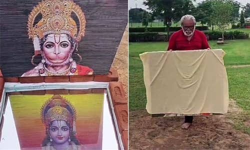 அக்பர் மொமின் வரைந்த அனுமார் ஓவியத்தின் பிம்பத்தில் தெரியும் ராமர்: வைரல்