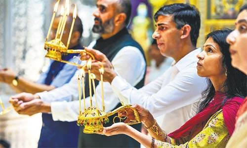 புதுடில்லி, பிரிட்டன் பிரதமர் ரிஷி சுனக், மனைவி அக் ஷதா மூர்த்தியுடன், புதுடில்லியில் உள்ள சுவாமி நாராயண் அக் ஷர்தாம் கோவிலில் நேற்று தரிசனம் செய்தார்.