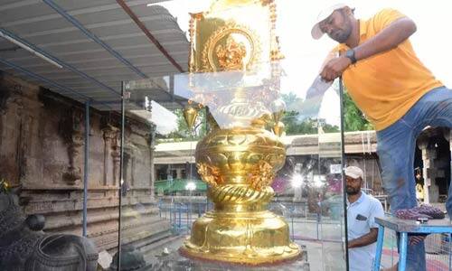 வேலுார் ஜலகண்டேஸ்வரர் கோவில் தங்க கொடிமரத்தை சுற்றி கண்ணாடி கூண்டு