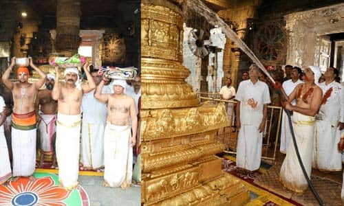 திருப்பதி ஏழுமலையான் கோவிலில் ஆண்டுக்கு நான்கு முறை ஆழ்வார் திருமஞ்சனம் நடத்துவது வழக்கம். உகாதி, ஆனிவார ஆஸ்தானம், பிரம்மோற்சவம், வைகுண்ட ஏகாதசி ஆகிய விழாக்களுக்கு முந்தைய செவ்வாய்க்கிழமையன்று கோயில் சுத்திகரிப்பு நிகழ்ச்சி நடத்தப்படுகிறது. வருடாந்திர பிரமோற்சவம் வரும் செப்டம்பர் 18 முதல் 26ம் தேதி வரை நடைபெற உள்ளது. இதையொட்டி இன்று 12ம் தேதி ஆழ்வார் திருமஞ்சனம் நடந்தது. கருவறை, ஆனந்த நிலையம், கல் மண்டபங்கள், தங்க கொடிமரம் உட்பட அனைத்து இடங்களும், தண்ணீரால் சுத்தம் செய்யப்பட்டது. பின்னர் கோயில் முழுதும் மூலிகை திரவியம் தெளிக்கப்பட்டு, சிறப்பு பூஜை நடந்தது. காலை 6 மணிக்கு தொடங்கும் திருமஞ்சனம் நிகழ்ச்சி சுமார் 5 மணி நேரம் தொடர்ந்து நடைபெறுகிறது. ஆழ்வார் திருமஞ்சனத்தை முன்னிட்டு 5 மணி நேரம் தரிசனம் ரத்து செய்யப்பட்டது. திருமஞ்சன நிகழ்ச்சி முடிந்ததும் 11 மணிக்கு பிறகே பக்தர்கள் அனுமதிக்கப்படுவர்.