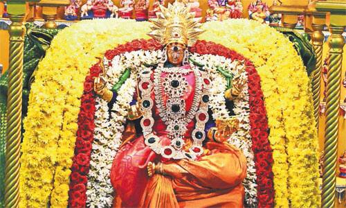 சென்னை, வடபழனி ஆண்டவர் கோவில்,சக்தி கொலு விழாவின் ஆறாம் நாளான நேற்று, கருமாரியம்மன் அலங்காரத்தில், அம்பாள் அருள்பாலித்தார். வடபழனி ஆண்டவர் கோவிலில் நவராத்திரி பண்டிகையை முன்னிட்டு, சக்தி கொலு வைத்து கொண்டாடப்பட்டு வருகிறது. அம்பாளுக்கு தினசரி, சிறப்பு அலங்காரம் செய்யப்படுகிறது. விழாவின் ஆறாம் நாளான நேற்று, அம்பாள் கருமாரியம்மன் அலங்காரத்தில் பக்தர்களுக்கு அருள்பாலித்தார். முன்னதாக நேற்று காலை, மாலையில் சிறப்பு பூஜை, தீபாராதனை நடந்தது. நேற்று மாலை, 108க்கும் மேற்பட்ட மகளிர் இணைந்து, லலிதா சகஸ்ரநாம பாராயணம் செய்தனர். அதைத் தொடர்ந்து வேத பாராயணம், திருமுறை பாராயணம், மகளிர் குழுவினரின் கொலு பாட்டு நடந்தது. மேலும், தமிழக இசை கவின் பல்கலைக் கழக முதுகலை மாணவ, மாணவியரின் கர்நாடக இசைக் கச்சேரியும் நடந்தது. அதைத் தொடர்ந்து, டாக்டர் கணேஷின் நாம சங்கீர்த்தனம் நடந்தது.