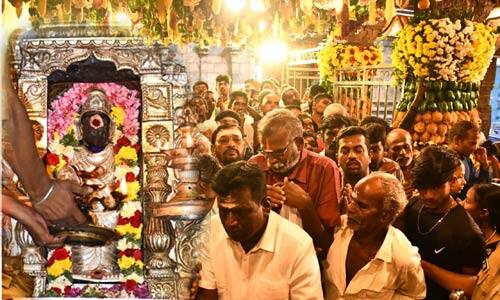 காரைக்கால் ; உலக பிரசித்தி பெற்ற காரைக்கால், திருநள்ளாறு சனீஸ்வர பகவான் கோயிலில் சனி பெயர்ச்சி விழா சிறப்பாக நடைபெற்று வருகிறது. இன்று மாலை 5.20மணிக்கு மகரத்திலிருந்து, கும்பராசிக்கு பிரவேசிக்கிறார் சனி பகவான். 2026 மார்ச் 6வரை கும்ப ராசியில் தங்கியிருப்பார். சனி தோஷம் நீக்கும் தலமான இங்கு அதிகாலை முதல் பக்தர்கள் குவிந்து வருகின்றனர். சனி பெயர்ச்சி விழாவை முன்னிட்டு மூலவர், சுவாமிகள் சிறப்பு அலங்காரத்தில் பக்தர்களுக்கு அருள் பாலித்து வருகின்றனர். ஏராளமான பக்தர்கள் பரவசத்துடன் தரிசனம் செய்து வருகின்றனர்.