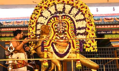 காரைக்கால் ; உலக பிரசித்தி பெற்ற காரைக்கால, திருநள்ளாறு சனீஸ்வர பகவான் கோவிலில், சனி தோஷம் நீக்கும் தலமான இங்கு அதிகாலை முதல் பக்தர்கள் குவிந்து வருகின்றனர். சனிப்பெயர்ச்சி விழாவை முன்னிட்டு உற்சவமூர்த்தி தங்க காகம் வாகனத்தில் அருள்பாலித்து வருகிறார். ஏராளமான பக்தர்கள் பரிகார பூஜை செய்து வழிபட்டனர்.