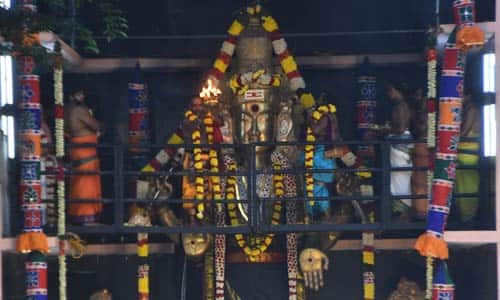 புதுச்சேரி ; மொரட்டாண்டி சனீஸ்வரர் பகவான் கோவிலில் 27 அடி உயர சனி பகவானுக்கு மகாதீபாரதனை நடைபெற்றது.
