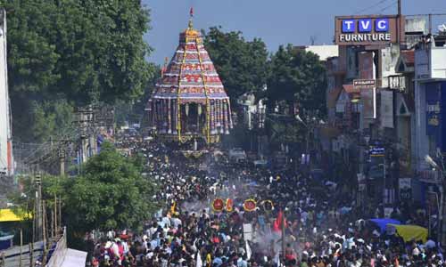 சிதம்பரம் நடராஜர் கோவிலில் மார்கழி மாத ஆருத்ரா தரிசன விழா கடந்த 18 ல் கொடியேற்றத்துடன் தொடங்கியது. இன்று நடைபெற்ற தேரோட்ட விழாவில் பல்லாயிரக்கணக்கான பக்தர்கள் வா வா நடராஜா வந்துவிடு நடராஜா என்ற கோஷத்துடன் தேர் இழுத்து வந்தனர். இந்த ஆண்டு ஆருத்ரா தரிசன விழா, சமயத்தில், பள்ளி மாணவர்களுக்கு அரையாண்டு விடுமுறை, ஐயப்ப பக்தர்கள் மாலையிட்டு கோவிலுக்கு செல்வது, மேல்மருவத்தூர் ஆதிபராசக்தி கோவிலுக்கு பக்தர்கள் மாலையிடுவது போன்ற காரணங்களால் பக்தர்கள் வருகை அதிகரித்துள்ளது.
