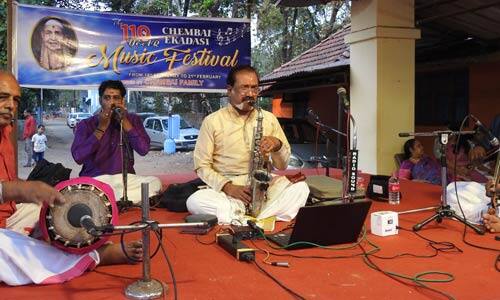 கர்நாடக இசை மேதை, செம்பை வைத்தியநாத பாகவதரால் துவக்கப்பட்ட சங்கீத உற்சவத்தை, அவரது குடும்பத்தினர் ஆண்டுதோறும் நடத்தி வருகின்றனர். இந்த நிலையில் நடப்பாண்டு ஏகாதசி உற்சவம் கடந்த 16ம் தேதி கொடியேற்றத்துடன் துவங்கியது. உஞ்சவததையொட்டி உள்ள மூன்று நான் சங்கீத உற்சவத்தில், இசை கலைஞர்களின் கச்சேரி நடந்தது. சங்கீத உற்சவத்தின் நிறைவு நாளான நேற்று காலை 9.15 மணிக்கு, தியாகராஜ ஸ்வாமிகளின் யாசகத்தை நினைவூட்டும் ஊஞ்சவிருத்தி பஜனை ராமச்சந்திரனின் தலைமையில் நடந்தது. அதன் பின் மண்ணூர் ராஜகுமாரன் உண்ணி, வெள்ளிநேழி சுப்ரமணியன், பாபுராஜ், விஸ்வநாதன், பிரியதர்சன் ஆகியோர் தலைமையில் பஞ்சரத்ன கீர்த்தனை பாடுதல் நடந்தது. தொடர்ந்து இளம் கலைஞர்களின் சங்கீதா ஆராதனை நடந்தது. மாலை 6.00க்கு சென்னை ராமநாதன் குழுவின் சாக்ஸபோன் கச்சேரி நடந்தது. அவருக்கு கொல்லம் ஸ்ரீஜித் (வயலின்), ஆலுவா கோபாலகிருஷ்ணன் (மிருதங்கம்), வெள்ளிநேழி ரமேஷ் (முகர்சங்) ஆகியோர் பக்க வாத்தியம் வாசித்தனர். தொடர்ந்து பாதிரியார் போள் பூவதிங்கள், பிரகாஷ் உள்ளியேரி குழுவின் ஹார்மோனியம் கச்சேரிகள் நடைபெற்றன. கோவிலில் இன்று நடக்கும் சிறப்பு பூஜைகளை தொடர்ந்து ஏகாதசி உற்சவம் நிறைவடைகிறது.