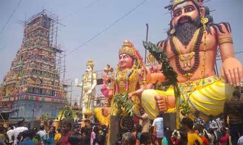 எண்ணுார், எண்ணுார், பர்மா நகரில் பிரசித்தி பெற்ற பீலிக்கான் முனீஸ்வரர் - அங்காள ஈஸ்வரி கோவில் உள்ளது. இக்கோவில் வளாகத்தில், 45 அடி உயரத்தில் முனீஸ்வரர் சிலை பிரதிஷ்டை செய்யப்பட்டது. மேலும், கோவிலின் 72 அடி உயர ராஜகோபுரம், 41 அடி உயர ஆஞ்சநேயர் சிலை, 43 அடி உயர அங்காள ஈஸ்வரி சிலைகள் மற்றும் கோவில் வளாகம் முழுதும் புனரமைக்கப்பட்டு, மஹா கும்பாபிஷேகம் நடந்தது. இதையொட்டி, கடந்த 1ம் தேதி கணபதிஹோமம், லஷ்மி பூஜை, நவக்கிரஹ ஹோமம், தனபூஜை, பூர்ணாஹூதி, தீபாராதனை உள்ளிட்டவை நடந்தன. இரண்டாம் கால யாகபூஜை, விக்கிரகங்கள் பிரதிஷ்டை, பிரதிஷ்டை பூஜை ஹோமம், மூன்றாம் கால பூஜை, நாடி சந்தானம், சங்கல்பம், சத்துவா அர்ச்சனை பூஜை ஹோமம் தீபாராதனை நடந்தது. தொடர்ந்து மறுநாள் புண்ணியாவதன ஹோமம், ரிக் ஷா பந்தனம், கலச பூஜை, மஹா பூர்ணாஹூதி முடிவுற்று, கடம் புறப்பாடானது. பின், ராஜகோபுரம், ஆஞ்சநேயர், அங்காள ஈஸ்வரி சிலைகளுக்கும் புதிதாக அமைக்கப்பட்ட முனீஸ்வரர் சிலைகளுக்கு புனித நீர் ஊற்றப்பட்டு, மஹா கும்பாபிஷேகம் நடந்தது. பின், பரிவார மூர்த்திகளுக்கும் புனித நீர் ஊற்றப்பட்டு, மஹா தீபாராதனை காண்பிக்கப்பட்டது. விழாவில், திருவொற்றியூர் எம்.எல்.ஏ., கே.பி.சங்கர், மண்டலக்குழு தலைவர் தனியரசு, பகுதி செயலர் அருள்தாசன், பனைமர தொழிலாளர்கள் நல வாரிய தலைவர் நாராயணன், கவுன்சிலர்கள் சொக்கலிங்கம், தமிழரசன் உட்பட ஆயிரக்கணக்கான பக்தர்கள் பங்கேற்றனர். மாலையில், காப்பு கட்டுதல் நிகழ்வுடன் 10 நாள் திருவிழா துவங்குகிறது. விழாவின் முக்கிய நிகழ்வான, 58ம் ஆண்டு, தீ மிதி திருவிழா, 12ம் தேதி நடைபெற உள்ளது.